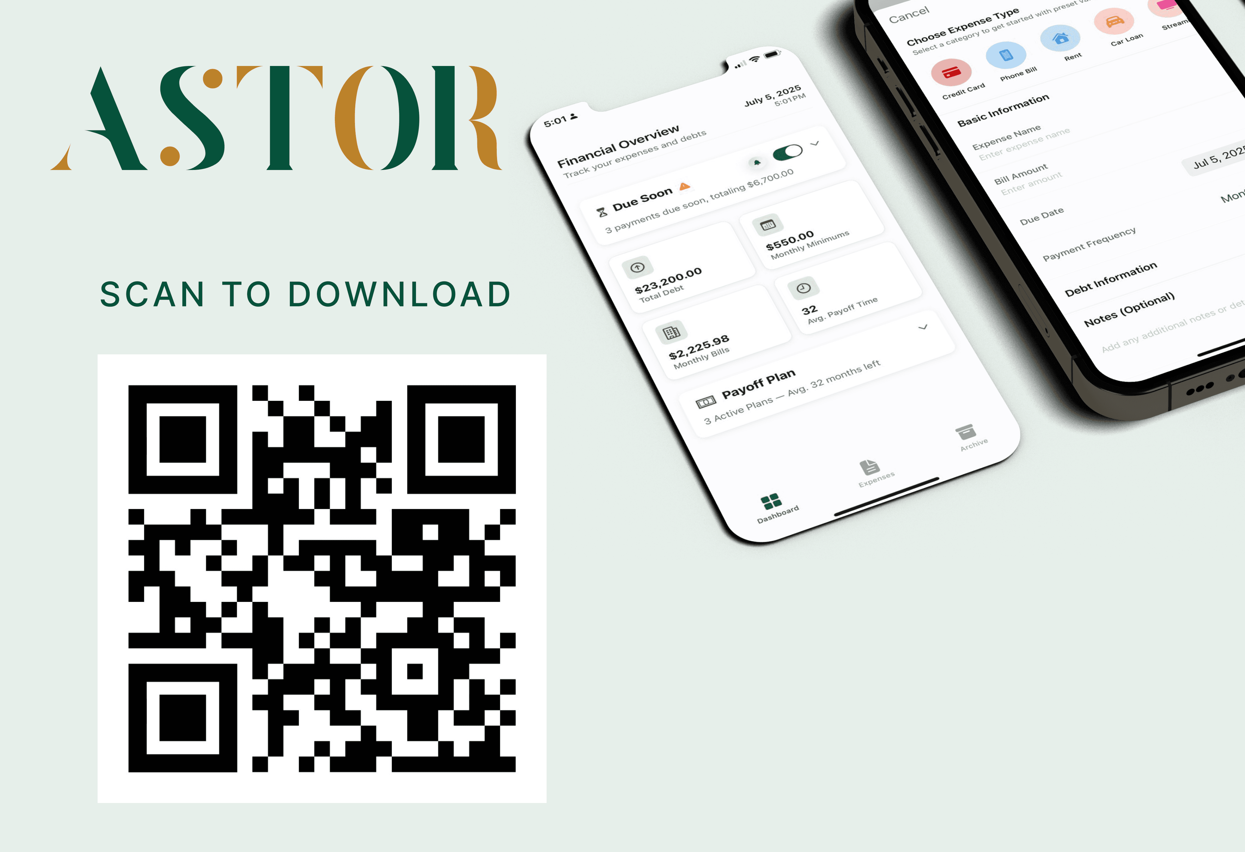 Designed and built independently, Astor is a personal project I designed and developed from concept to launch, an exploration of simplifying how people organize their finances.
