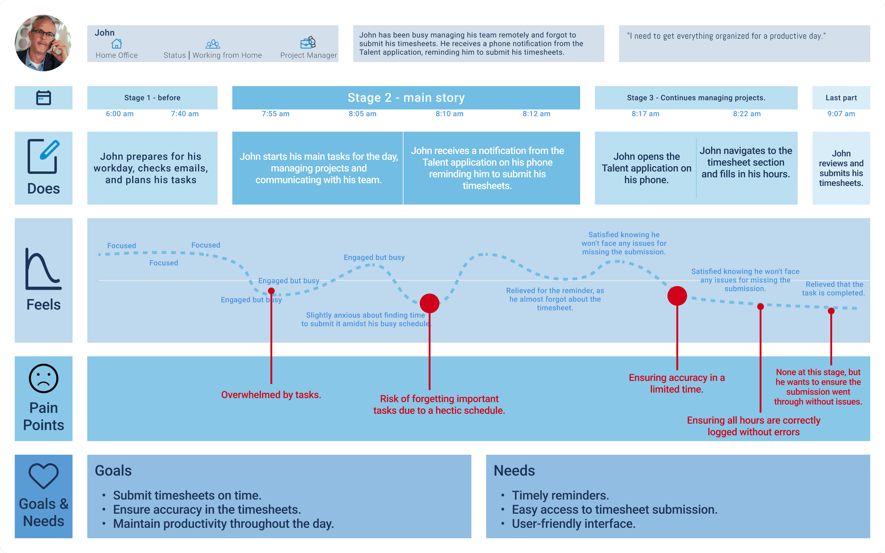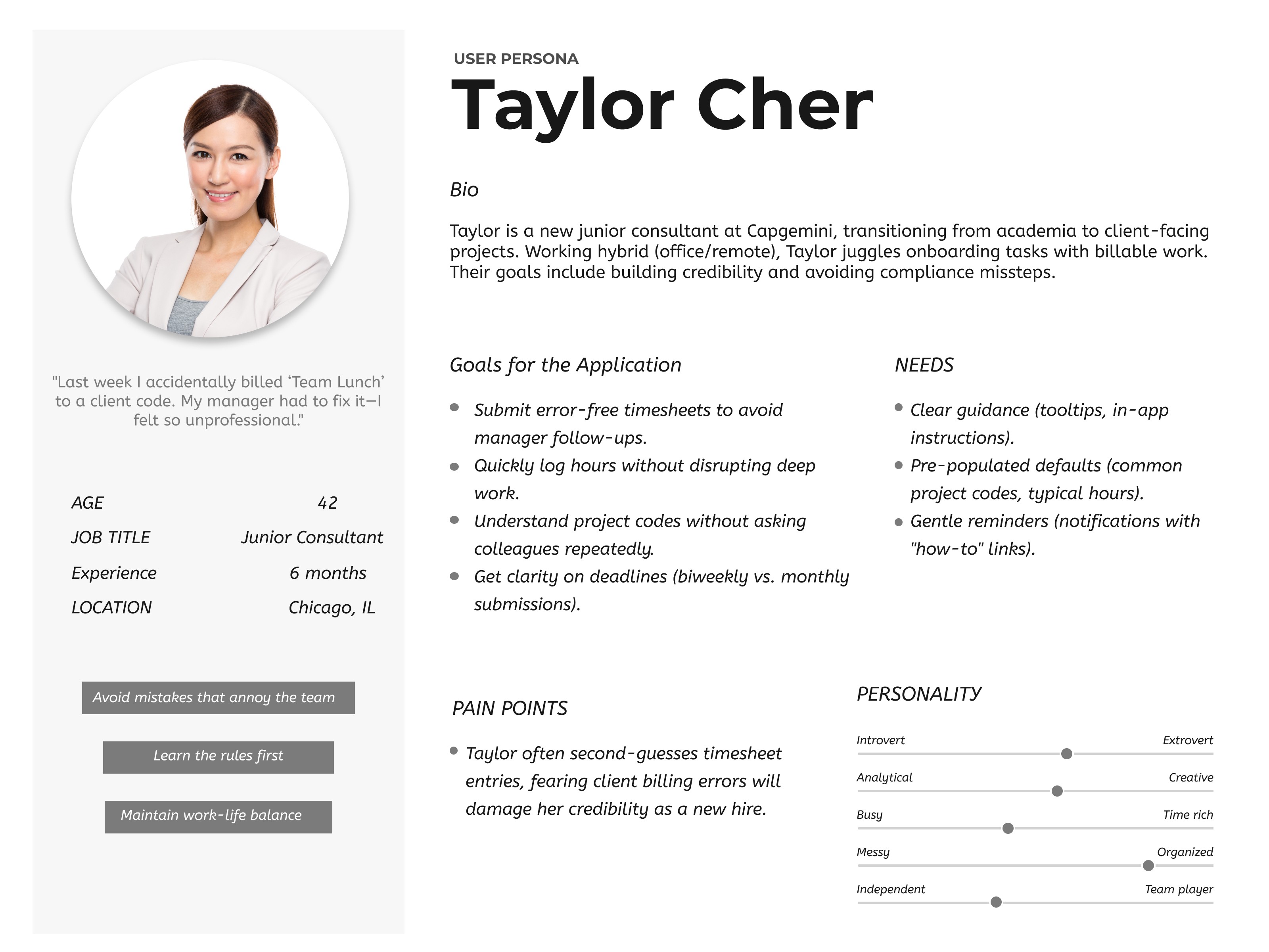 This prototype transforms timesheet submissions from a tedious task into a seamless process, with intuitive interactions like smart defaults and visual deadline cues, all carefully tested with employees to ensure real-world usability